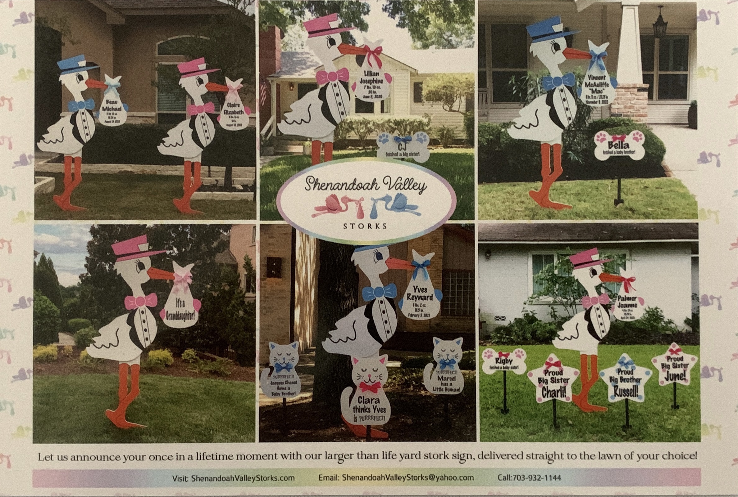 A new baby is like the beginning of all things- wonder, hope, and a dream of possibilities! At Shenandoah Valley Storks we have the sweetest stork yard signs for announcing your new baby! All of our signs can be personalized. After your week rental period, we will leave your personalized keepsake bundle at the front door. For pricing https://www.shenandoahvalleystorks.com/pricing-and-coverage-stork-rental-shenadoah-valley-va/